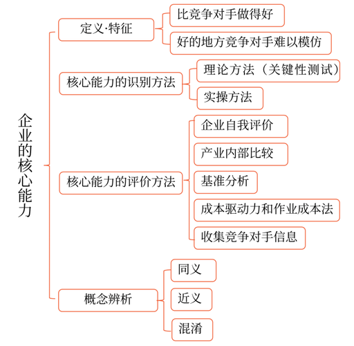 1.企業(yè)核心能力可以是完成某項活動所需的優(yōu)秀技能,也可以是在一定范圍和深度上的企業(yè)的技術(shù)訣竅,或者是那些能夠形成很大競爭價值的一系列具體生產(chǎn)技能的組合。