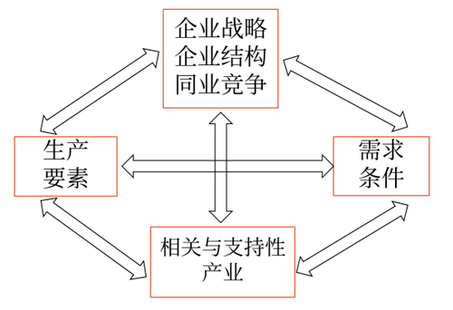 波特識別出國家產(chǎn)業(yè)競爭優(yōu)勢的4個決定因素,并以鉆石圖來顯示: