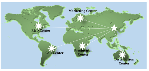 企業(yè)通常將產(chǎn)品開發(fā)職能留在母國,在東道國建立制造和營銷職能。在大多數(shù)的國際化企業(yè)中,企業(yè)總部一般嚴(yán)格地控制產(chǎn)品與市場戰(zhàn)略的決策權(quán)。