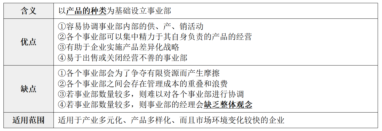 ①按照產(chǎn)品來劃分,如相當(dāng)多的家電企業(yè)均采用了該種劃分,分為空調(diào)事業(yè)部、冰箱事業(yè)部、洗衣機事業(yè)部、電視機事業(yè)部等;