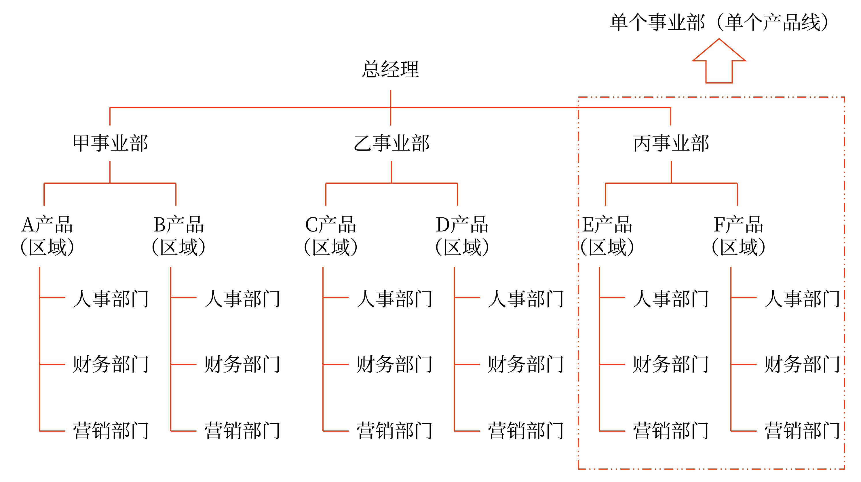 在總公司領(lǐng)導(dǎo)下設(shè)立多個事業(yè)部,把分權(quán)管理與獨立核算結(jié)合在一起,按產(chǎn)品、地區(qū)或市場(顧客)劃分事業(yè)部,每個事業(yè)部都有自己的產(chǎn)品和特定的市場,能夠完成某種產(chǎn)品從生產(chǎn)到銷售的全部職能。