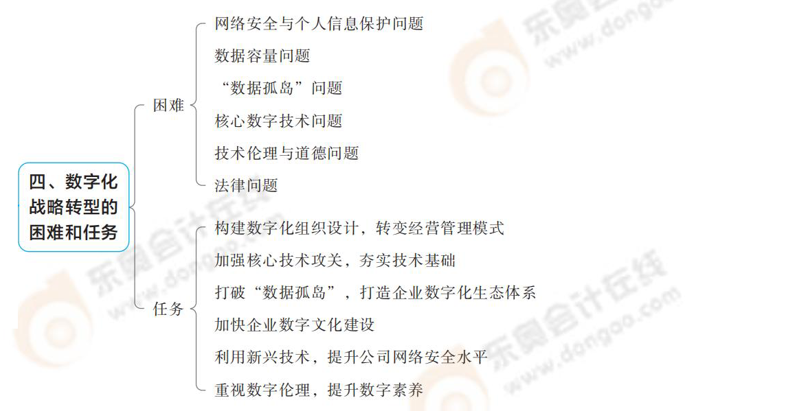 2025年注冊會計師戰(zhàn)略科目的預(yù)習(xí)備考來到了第四章,進(jìn)度較快的考生已經(jīng)開始了二輪預(yù)習(xí)。為了方便考生們?nèi)鎸W(xué)習(xí)知識點,串聯(lián)教材的知識框架,東奧為各位考生整理了戰(zhàn)略科目的考點導(dǎo)圖,下文導(dǎo)圖涉及知識點公司戰(zhàn)略與數(shù)字化技術(shù)的相關(guān)內(nèi)容,各位考生一起來看!