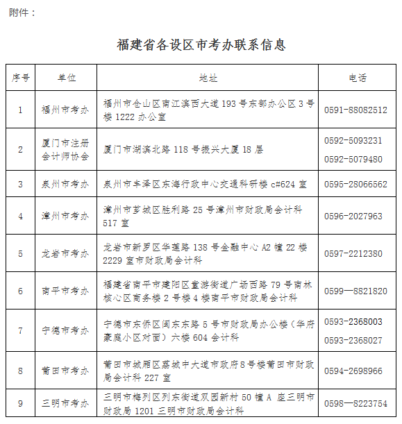 附件:福建省各設(shè)區(qū)市考辦聯(lián)系信息