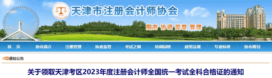 天津:關(guān)于領(lǐng)取2023年度注會考試全科合格證的通知