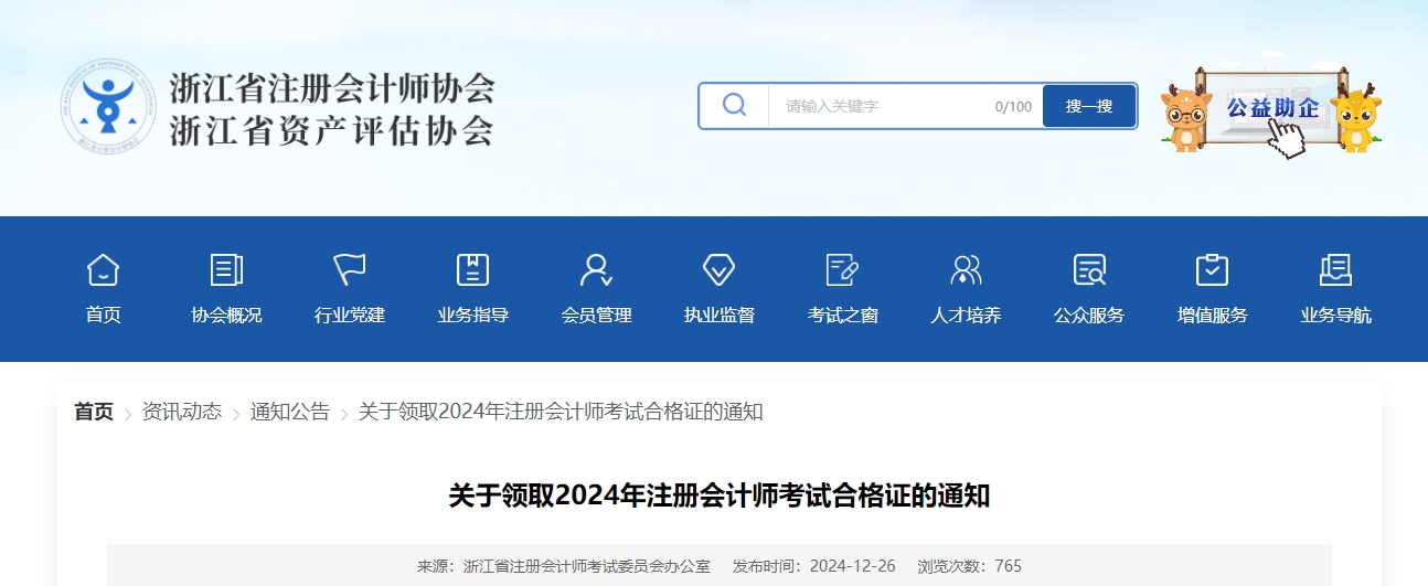 浙江注協(xié)發(fā)布關(guān)于領(lǐng)取2024年注冊會計師考試合格證的通知