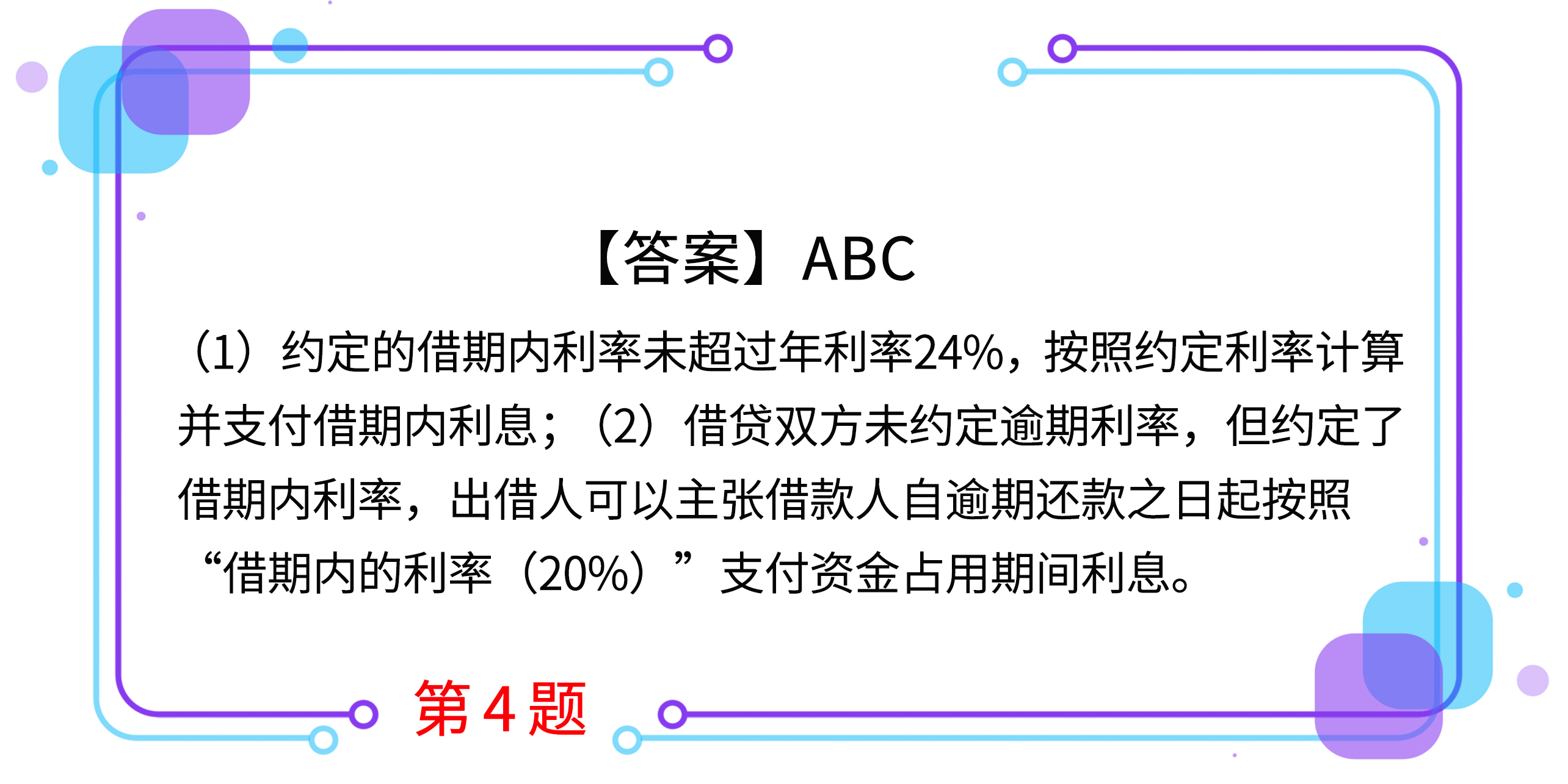 4.甲企業(yè)向職工王某等10人借款,向王某等人出具的借據(jù)載明的本金共計(jì)120萬元,借據(jù)同時(shí)載明借期內(nèi)年利率20%,借款期限1年。借款到期后,甲企業(yè)未償還任何本息,王某等人向人民法院提起訴訟,其提出的下列主張中,人民法院可以支持的有( )。