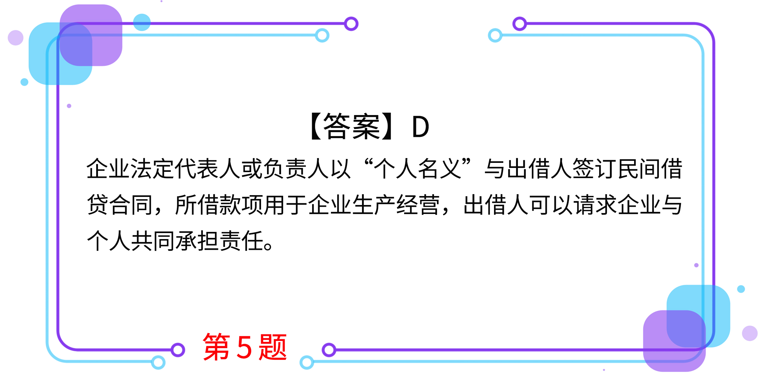 5.王某是甲公司的法定代表人,為支付建設(shè)工程招投標(biāo)的履約保證金,王某以個(gè)人名義向劉某等人借款,劉某等人陸續(xù)通過銀行向王某個(gè)人賬戶轉(zhuǎn)賬共計(jì)120萬元,王某分別出具了借據(jù),內(nèi)容為“今借到劉某等人人民幣壹佰貳拾萬圓整,按月息貳分計(jì)息,項(xiàng)目建設(shè)用”,王某在借據(jù)上簽字。后發(fā)生糾紛,劉某等人提起訴訟。根據(jù)合同法律制度的規(guī)定,下列說法正確的是( )。