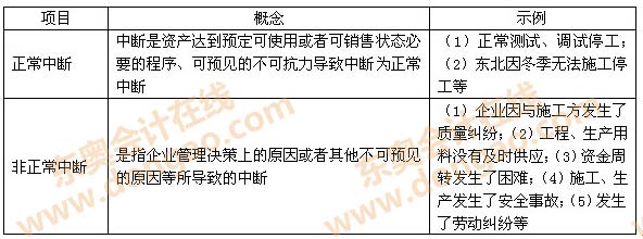 符合資本化條件的資產(chǎn)在購建或者生產(chǎn)過程中發(fā)生非正常中斷、且中斷時間連續(xù)超過3個月的,應(yīng)當(dāng)暫停借款費用的資本化。在中斷期間所發(fā)生的借款費用,應(yīng)當(dāng)計入當(dāng)期損益,直至購建或者生產(chǎn)活動重新開始。但是,如果中斷是使所購建或者生產(chǎn)的符合資本化條件的資產(chǎn)達(dá)到預(yù)定可使用或者可銷售狀態(tài)必要的程序,所發(fā)生的借款費用應(yīng)當(dāng)繼續(xù)資本化。