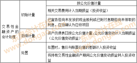 復(fù)習(xí)點(diǎn)撥:本考點(diǎn)在注會(huì)歷年考試中出過多次客觀題,綜合題也有涉及,需要考生務(wù)必掌握,可以根據(jù)以下表格的內(nèi)容,記憶交易性金融資產(chǎn)取得、持有期間和出售時(shí)的所有會(huì)計(jì)分錄,交易性金融資產(chǎn)持有期間的投資收益計(jì)算和公允價(jià)值變動(dòng)都是特別容易出題的點(diǎn),再次建議考生務(wù)必掌握。