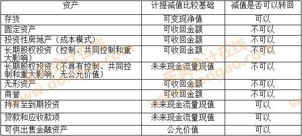 資產(chǎn)減值準則中規(guī)范的資產(chǎn),其減值損失一經(jīng)確認,在以后會計期間不得轉(zhuǎn)回,但有些資產(chǎn)的減值是可以轉(zhuǎn)回的。資產(chǎn)減值是否可以轉(zhuǎn)回如下表所示: