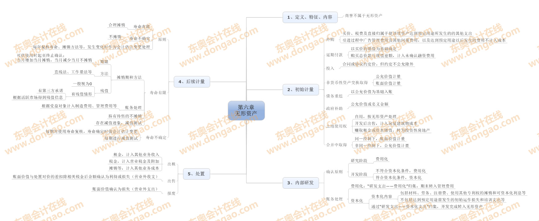 【東奧小編】2014年注冊會計師考試正式進(jìn)入基礎(chǔ)備考階段,注會知識點繁雜細(xì)碎,想要全面掌握注會各科目的知識,需要科學(xué)高效的學(xué)習(xí)方法,思維導(dǎo)圖正是一種非常適合注會復(fù)習(xí)的學(xué)習(xí)方法,正確利用思維導(dǎo)圖,不僅能使自己積極進(jìn)行知識點總結(jié),形成清晰的思路,還能對知識點進(jìn)行快速查漏補(bǔ)缺。以下是2014注會《會計》第六章無形資產(chǎn)思維導(dǎo)圖: