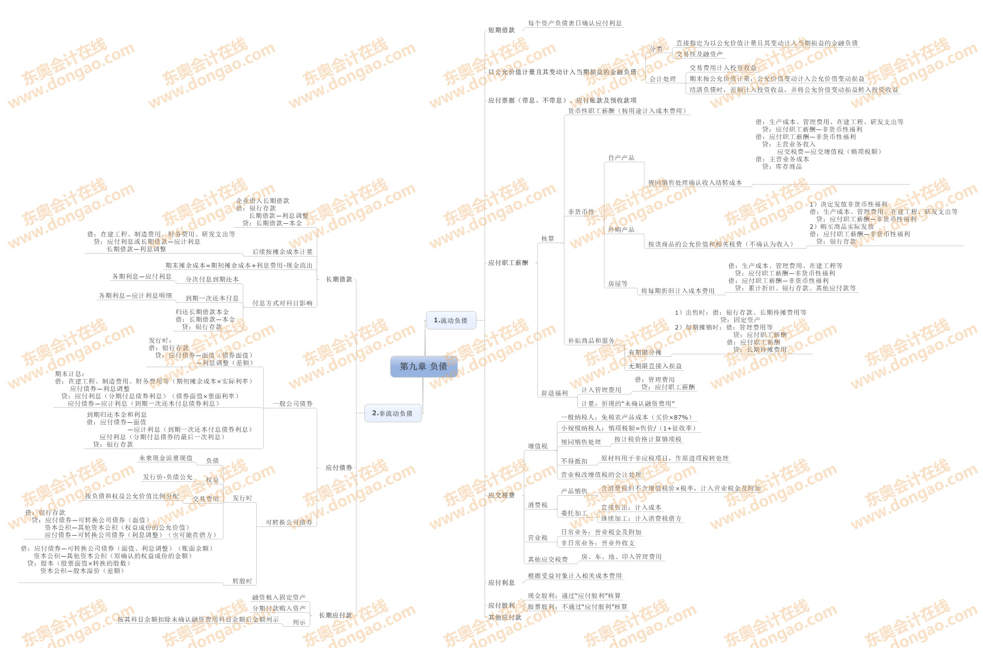 【東奧小編】2014年注冊會計師考試正式進入基礎(chǔ)備考階段,注會知識點繁雜細碎,想要全面掌握注會各科目的知識,需要科學(xué)高效的學(xué)習(xí)方法,思維導(dǎo)圖正是一種非常適合注會復(fù)習(xí)的學(xué)習(xí)方法,正確利用思維導(dǎo)圖,不僅能使自己積極進行知識點總結(jié),形成清晰的思路,還能對知識點進行快速查漏補缺。以下是2014注會《會計》第九章負債思維導(dǎo)圖: