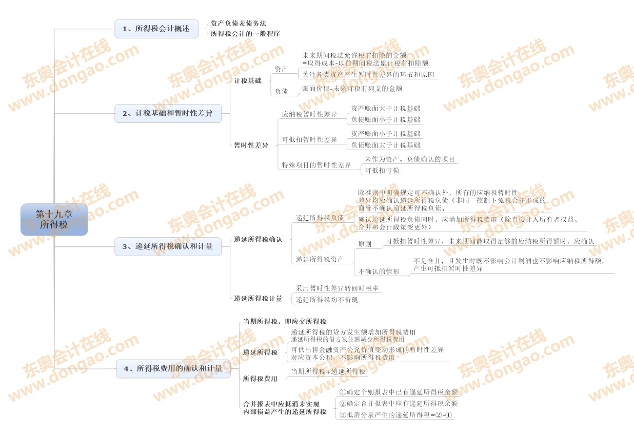 【東奧小編】2014年注冊(cè)會(huì)計(jì)師考試正式進(jìn)入基礎(chǔ)備考階段,注會(huì)知識(shí)點(diǎn)繁雜細(xì)碎,想要全面掌握注會(huì)各科目的知識(shí),需要科學(xué)高效的學(xué)習(xí)方法,思維導(dǎo)圖正是一種非常適合注會(huì)復(fù)習(xí)的學(xué)習(xí)方法,正確利用思維導(dǎo)圖,不僅能使自己積極進(jìn)行知識(shí)點(diǎn)總結(jié),形成清晰的思路,還能對(duì)知識(shí)點(diǎn)進(jìn)行快速查漏補(bǔ)缺。以下是2014注會(huì)《會(huì)計(jì)》第十九章所得稅思維導(dǎo)圖: