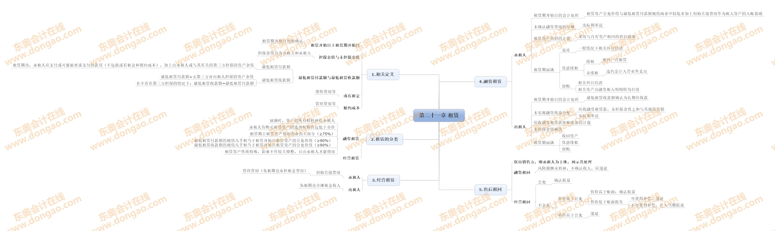 【東奧小編】2014年注冊(cè)會(huì)計(jì)師考試正式進(jìn)入基礎(chǔ)備考階段,注會(huì)知識(shí)點(diǎn)繁雜細(xì)碎,想要全面掌握注會(huì)各科目的知識(shí),需要科學(xué)高效的學(xué)習(xí)方法,思維導(dǎo)圖正是一種非常適合注會(huì)復(fù)習(xí)的學(xué)習(xí)方法,正確利用思維導(dǎo)圖,不僅能使自己積極進(jìn)行知識(shí)點(diǎn)總結(jié),形成清晰的思路,還能對(duì)知識(shí)點(diǎn)進(jìn)行快速查漏補(bǔ)缺。以下是2014注會(huì)《會(huì)計(jì)》第二十一章租賃思維導(dǎo)圖: