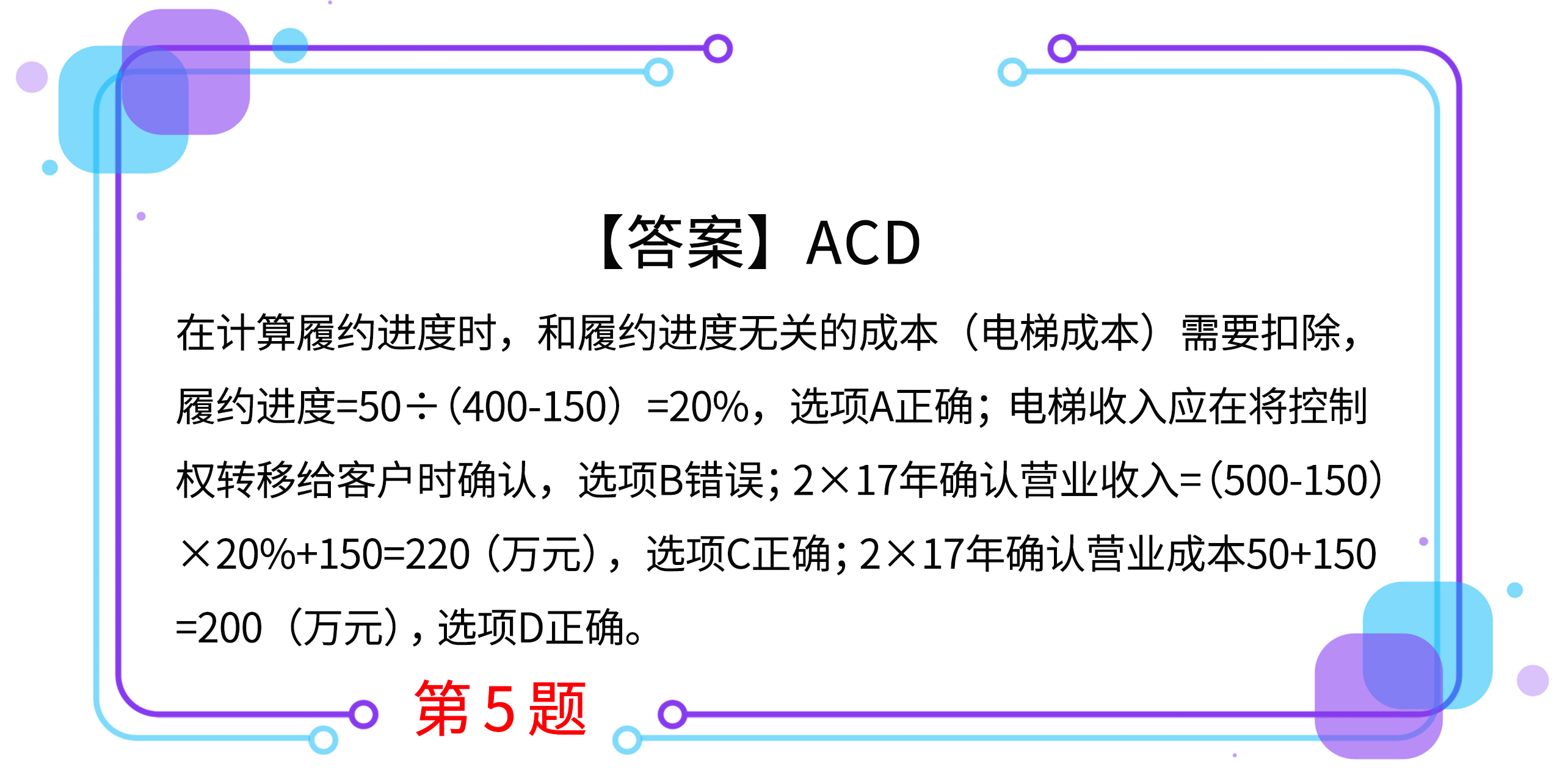 5.2×17年11月,甲公司與乙公司訂立一項裝修一幢3層建筑并安裝新電梯的合同,合同總對價為500萬元。已承諾的裝修服務(wù)(包括電梯安裝,假定電梯毛利為0)是一項在一段時間內(nèi)履行的履約義務(wù)。預計總成本為400萬元(包括電梯成本150萬元)。甲公司在電梯轉(zhuǎn)讓給乙公司前獲得對電梯的控制。甲公司使用投入法基于已發(fā)生的成本來計量其履約義務(wù)的履約進度。乙公司在2×17年12月電梯運抵該建筑物時獲得對電梯的控制,電梯直至2×18年6月才安裝完成。甲公司未參與電梯的設(shè)計與安裝。至2×17年12月31日,已發(fā)生的成本為50萬元(不包括電梯)。下列會計處理表述中,正確的有( )。
