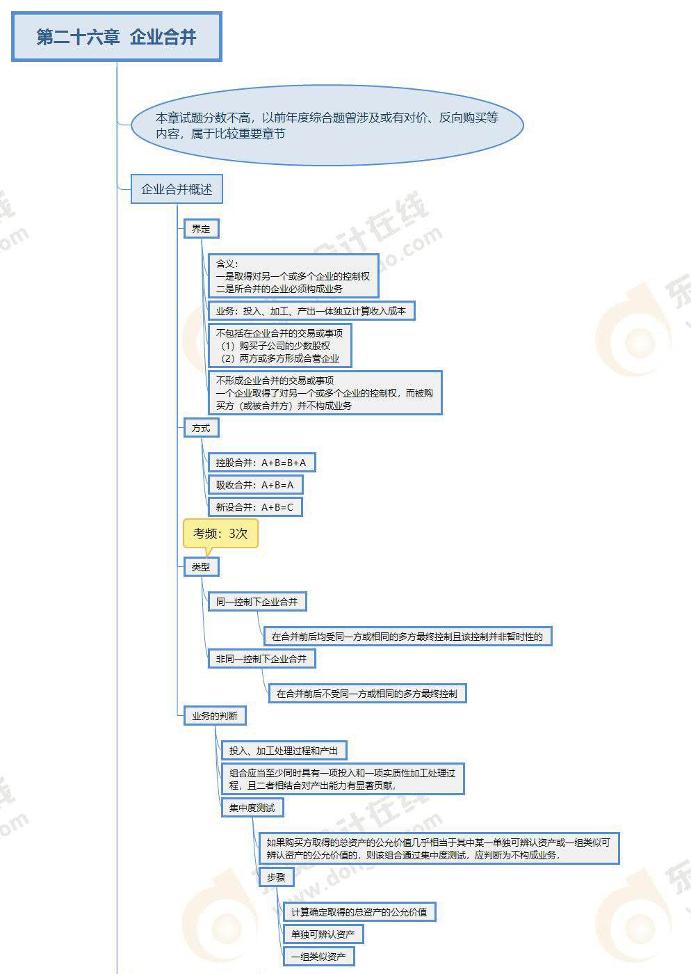 注會(huì)《會(huì)計(jì)》第二十六章闡述企業(yè)合并的會(huì)計(jì)處理,在學(xué)習(xí)本章時(shí),可先對(duì)長期股權(quán)投資章節(jié)內(nèi)容進(jìn)行復(fù)習(xí),再開啟本章的學(xué)習(xí)。以下是2022年注會(huì)《會(huì)計(jì)》第二十六章思維導(dǎo)圖+章節(jié)練習(xí)題,快來免費(fèi)領(lǐng)取吧!