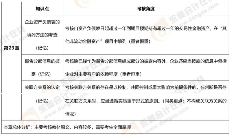 本章既可以考查客觀題,側(cè)重流動(dòng)性項(xiàng)目和非流動(dòng)性項(xiàng)目的劃分、關(guān)聯(lián)方關(guān)系的披露等知識(shí)點(diǎn)的考查也可以考查主觀題,與資產(chǎn)負(fù)債表日后事項(xiàng)等章節(jié)內(nèi)容結(jié)合考查。考查內(nèi)容的覆蓋面越來(lái)越廣,建議學(xué)員熟讀教材