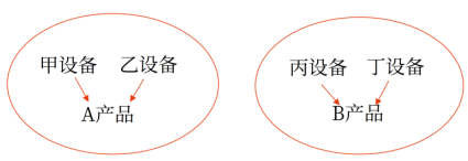 如某車間有甲設(shè)備、乙設(shè)備、丙設(shè)備和丁設(shè)備,甲設(shè)備和乙設(shè)備生產(chǎn)A產(chǎn)品,丙設(shè)備和丁設(shè)備生產(chǎn)B產(chǎn)品。