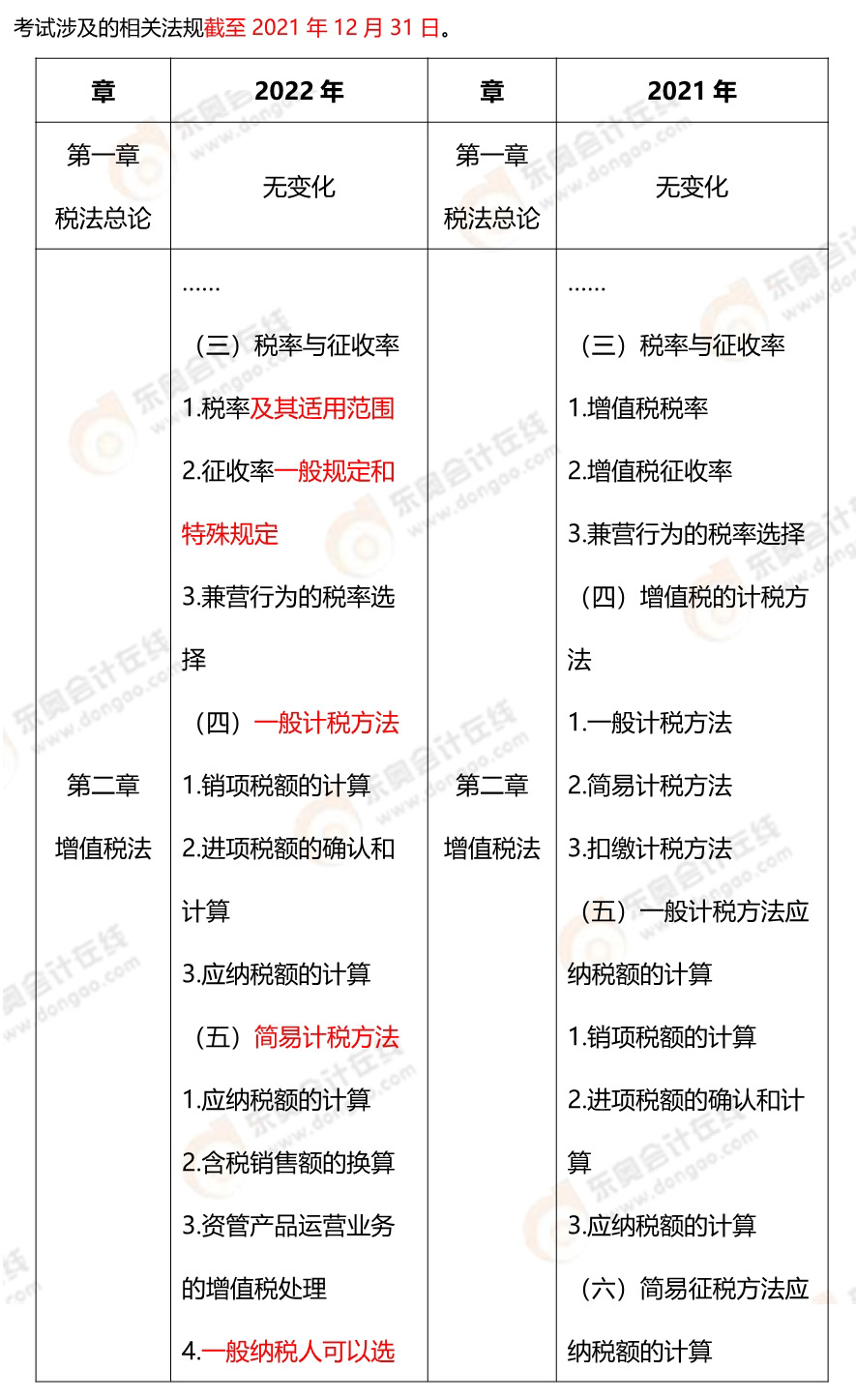 二、2022年注冊(cè)會(huì)計(jì)師稅法考綱變化對(duì)比