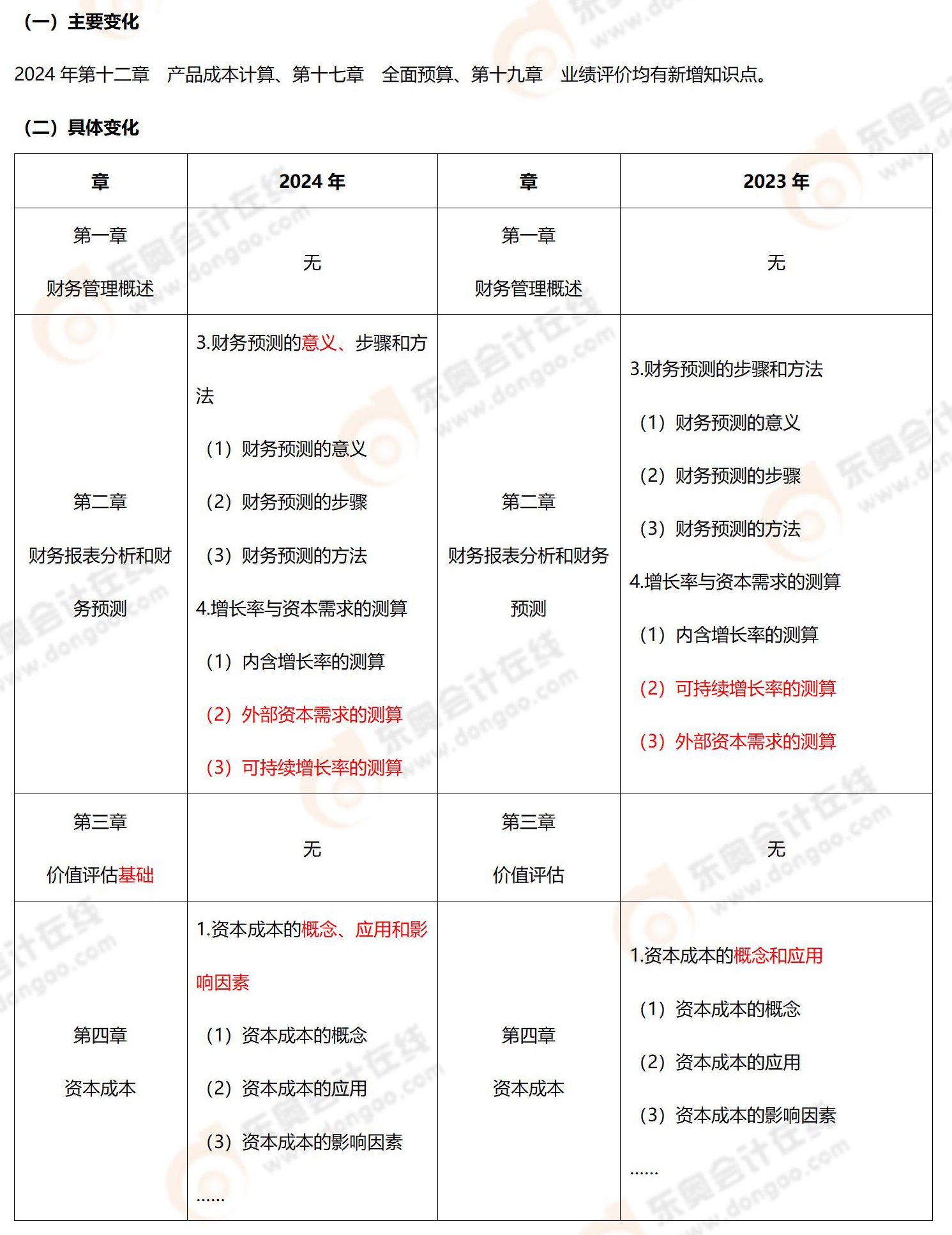 2024年注會《財務(wù)成本管理》大綱對比0228_01