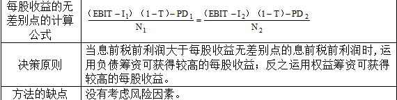(二)融資的每股收益分析(每股收益無差別點分析法)