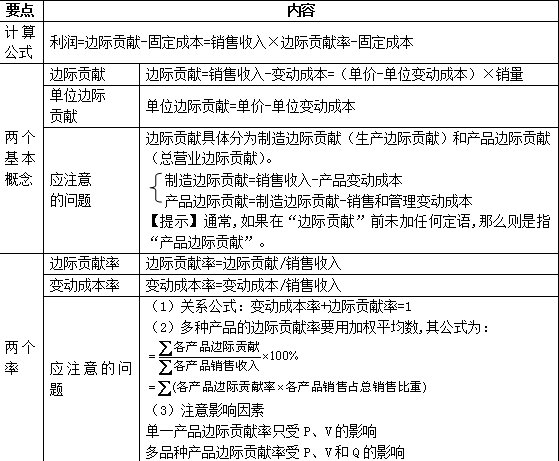 (二)邊際貢獻方程式: