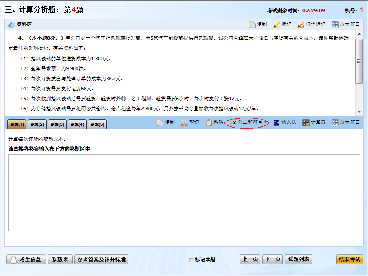 涉及計(jì)算分析題的科目有《稅法》和《財(cái)務(wù)成本管理》。這類(lèi)題型要用到大量的公式和特殊符號(hào),有三種輸入公式符號(hào)的途徑,分別是:機(jī)考系統(tǒng)中的公式符號(hào)按鈕(下圖中間)、搜狗輸入法工具箱中的特殊符號(hào)以及鍵盤(pán)快捷鍵。其中機(jī)考系統(tǒng)中的公式符號(hào)輸入總?cè)菀撞僮鳎I盤(pán)中特殊符號(hào)快捷鍵則是最快捷簡(jiǎn)易。筆者建議考生們?cè)谄綍r(shí)進(jìn)行機(jī)考練習(xí)時(shí)多運(yùn)用快捷鍵,熟練之后對(duì)于提速相當(dāng)有幫助!