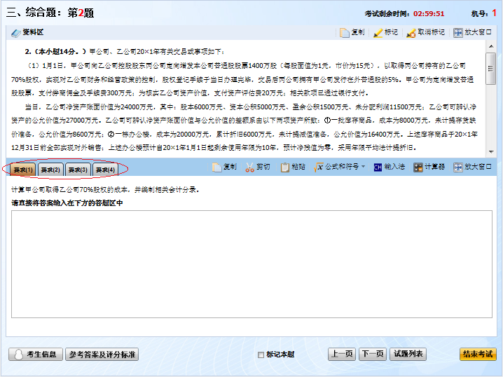 綜合題幾乎每道題里都有好幾個(gè)要求需要考生作答(如上圖左邊中間的提示),考生千萬(wàn)不能掉以輕心,做完要求1就直接跳到下一大題,平時(shí)在進(jìn)行機(jī)考練習(xí),審題時(shí)注意掃一眼題目要求,有多個(gè)要求的提醒自己千萬(wàn)別忘記做完,練習(xí)多了,養(yǎng)成了習(xí)慣,上考場(chǎng)時(shí)就不會(huì)因?yàn)槁┳龆Х帧?/P>