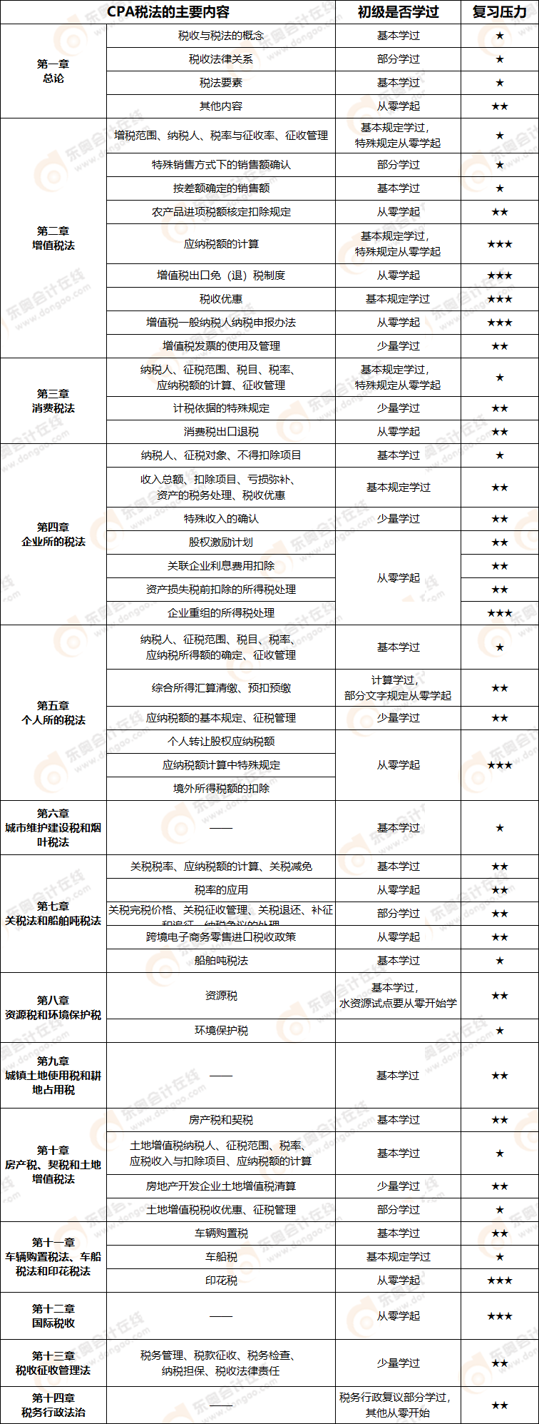 除第十二章國際稅收以外,其他章節(jié)的內(nèi)容,在初級經(jīng)濟法基礎(chǔ)中或多或少都有涉及,為了方便大家學習,東奧小編根據(jù)東奧名師斌哥的直播,整理出了注會稅法與初級經(jīng)濟法基礎(chǔ)章節(jié)對比,考生們也可以點擊紅色文字,查看東奧名師斌哥的視頻講解哦!