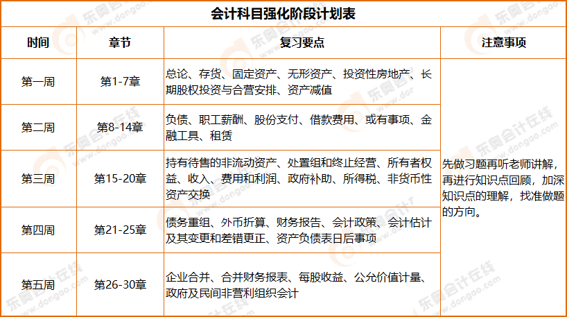 以上就是東奧小編為大家整理的關(guān)于注會會計科目強(qiáng)化階段的學(xué)習(xí)計劃及學(xué)習(xí)方法,希望對大家有所幫助!注會考試時間為8月27日-29日,大家要合理利用小編為大家提供的相關(guān)資料,爭取早日取得注會證書!