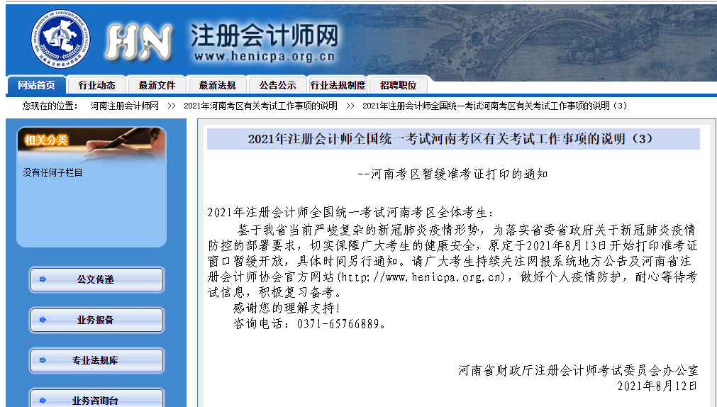 (2)河南、湖北考區(qū)注會準(zhǔn)考證打印時間再次推遲!