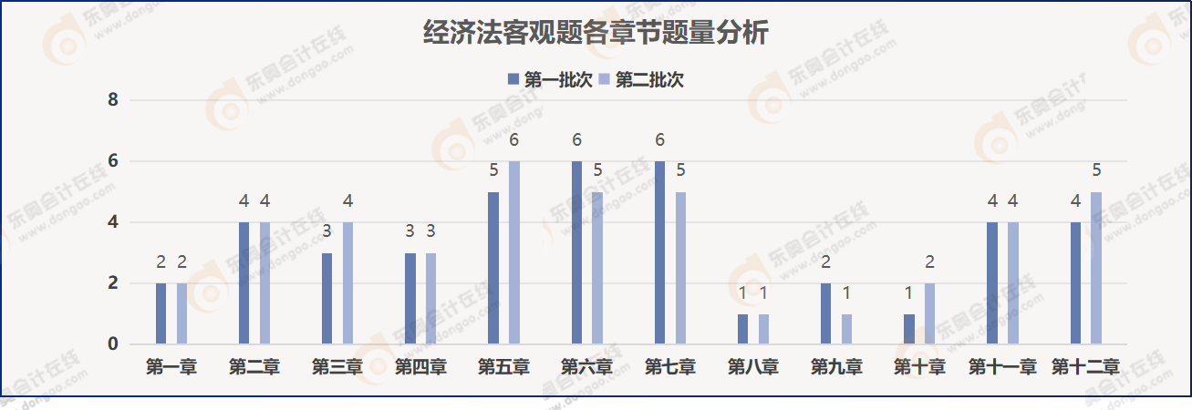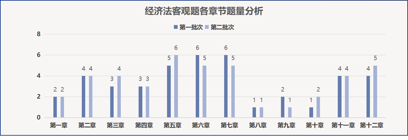 在兩個(gè)批次的考試中,各章節(jié)均有出題。從出題的數(shù)量可以看出,第二章、第五章、第六章、第七章、第十一章、第十二章是考查的重點(diǎn)。