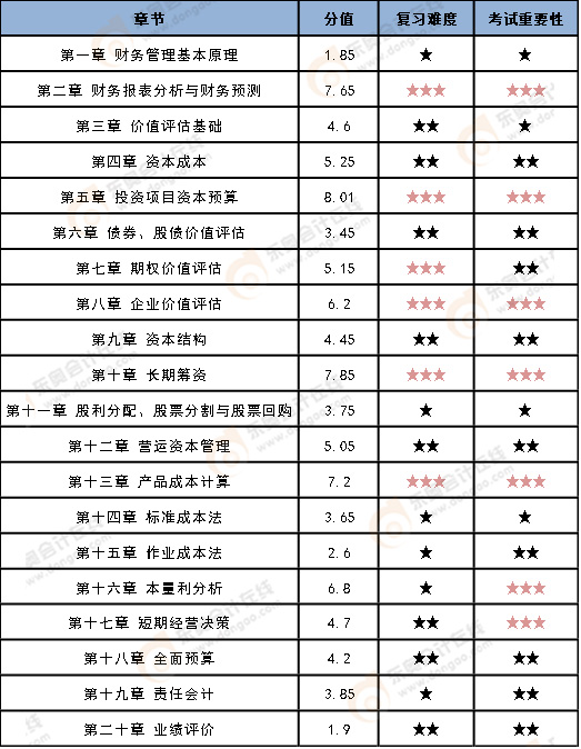 / 注會財管各章節(jié)考試重要性及備考難度 /
