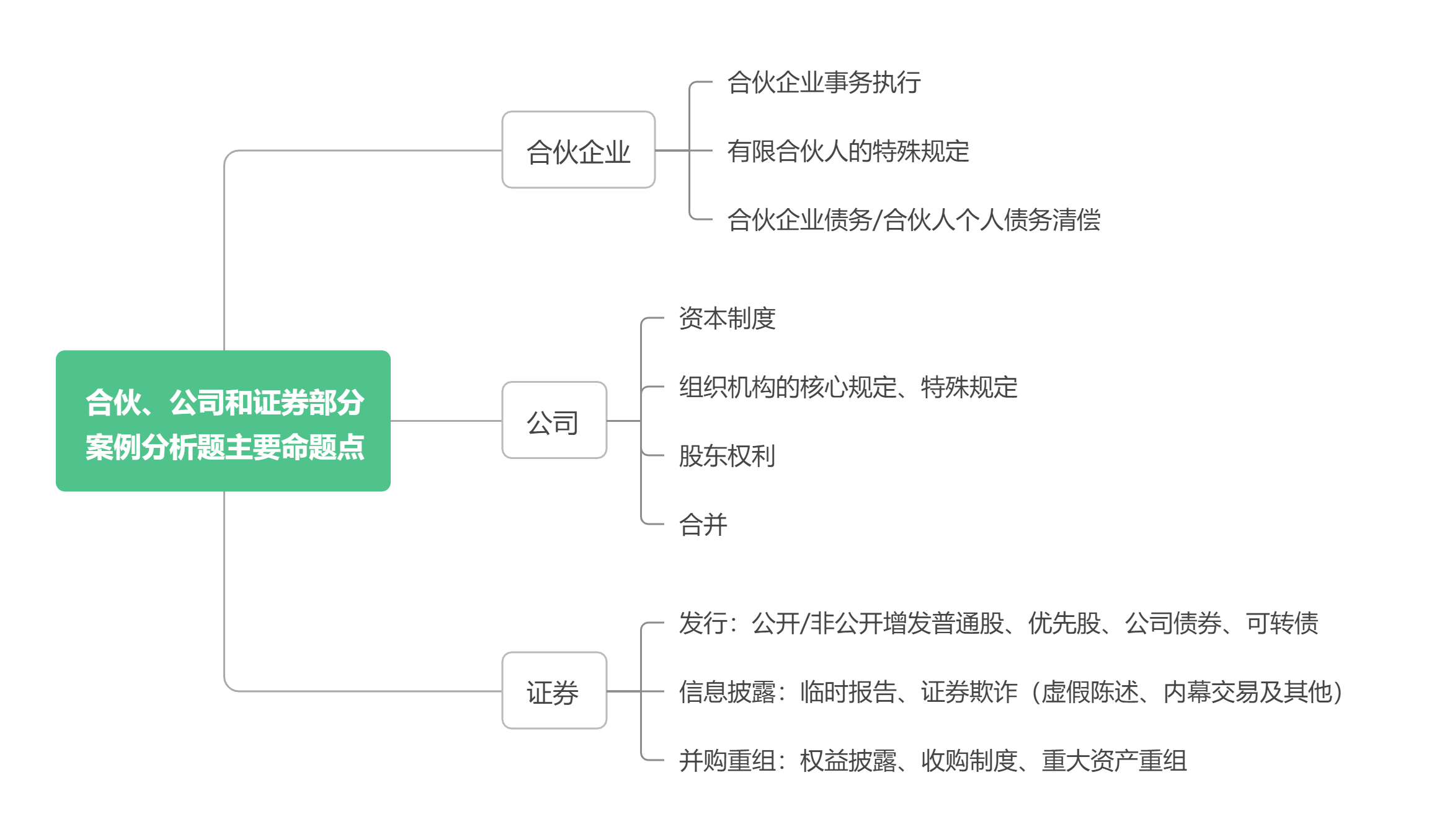 2、以證券法律制度為主(可能涉及公司法律制度、合伙企業(yè)法律制度)的案例分析題是卷面4道大題里最難的一道,盡力拿到能力范圍內(nèi)的分?jǐn)?shù)請做好以下4點: