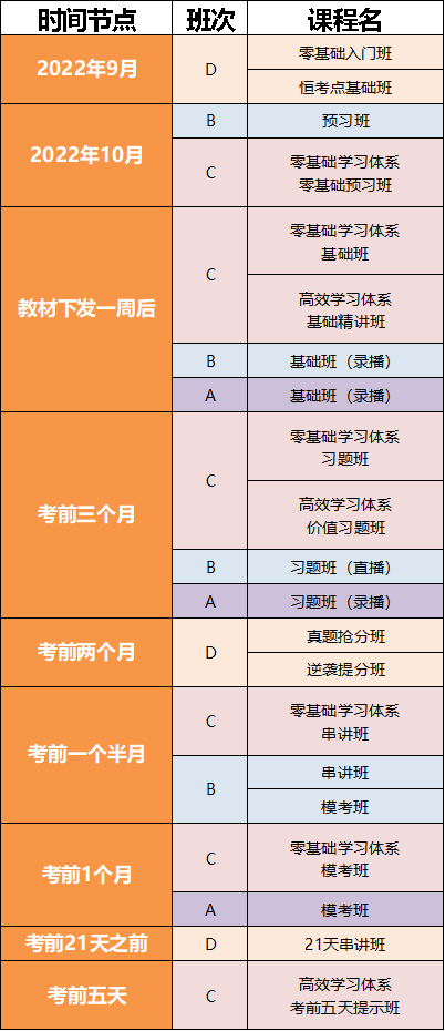 解決了提前備考知識(shí)點(diǎn)變化的問(wèn)題,那么讓我們一起來(lái)看看,2023年提前備考考生時(shí)間安排和課程詳情。