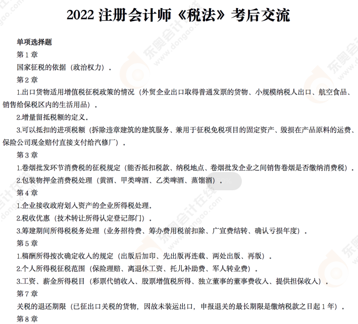 2022年注冊(cè)會(huì)計(jì)師稅法科目第一批次的考試終于結(jié)束了,考生們對(duì)考試中都考了哪些知識(shí)點(diǎn)十分好奇,尤其是對(duì)于還未參加考試的第二批次考試的考生以及延考考生來(lái)說(shuō),第一批次的考試考點(diǎn)十分具有參考意義。在東奧會(huì)計(jì)在線的直播活動(dòng)中,各位考生與直播名師積極互動(dòng),反饋了很多在本批次考試中遇到的考點(diǎn)內(nèi)容。東奧會(huì)計(jì)在線為大家整理了文字版本的內(nèi)容,有需要的考生可以閱讀下文了解哦!點(diǎn)擊觀看完整直播>>>