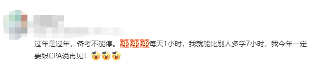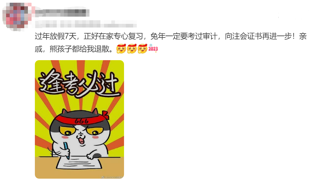 但即便是再累、再苦、再煩,依舊有很多注會女生下定了決心,開始進行這場磨煉心態(tài)、意志和身體的“備戰(zhàn)”。更有甚者,在春節(jié)期間也沒有放下注會考試,抓緊了一切時間復(fù)習(xí)。