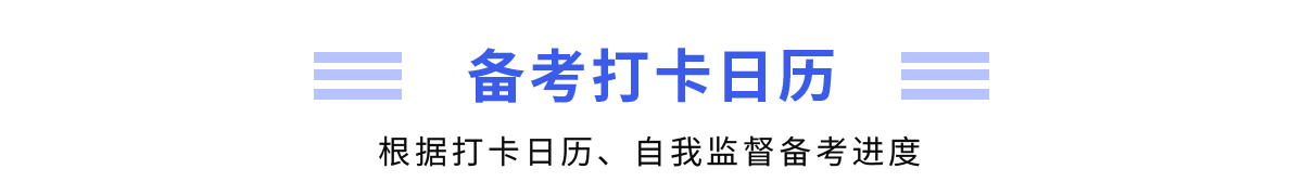 在學習過程中,考生可以利用“備考日歷打卡表”進行監(jiān)督和記錄,打卡表按照月份進行排列,可以將此打卡表打印在A4紙上,進行自我監(jiān)督。如果完成了當日學習任務,就可以在方框內(nèi)畫上“√”,成就感滿滿。