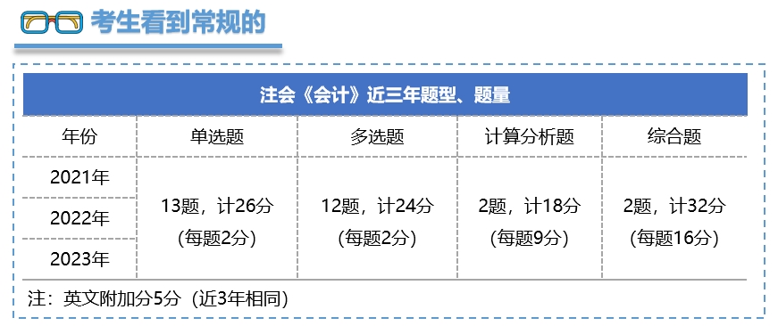 每一年注冊會計師考試首科開場都是《會計》科目??荚囯y度與風向也多由《會計》科目定調(diào)定檔,因此不論是否報考《會計》,大家都十分關(guān)注此科目的考情考務。多年來,《會計》也不負眾望,始終把控著注會考試的難度基調(diào)。在注會六科中,也是唯一一門考試時長為3小時的科目,可見考核“容量”之大。