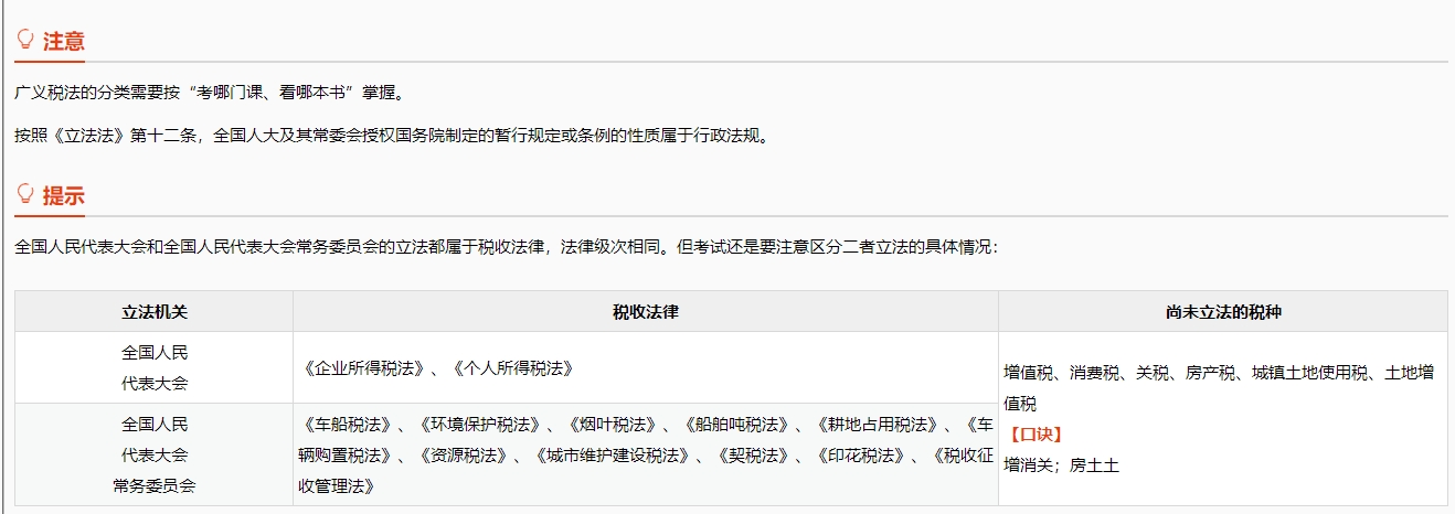劉穎老師善于歸納,把“碎法”變得不再“碎”,例如,教材中關于稅收的立法機關表述比較零散,劉穎老師在講義中按照稅收法律、授權立法、稅收法規(guī)和稅收規(guī)章四個維度將知識點歸納起來,化碎為整,在學習時一目了然。