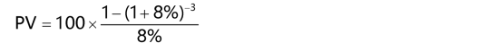 練習(xí):R=4%+8%×1.115     V=100/(1+R)4=?