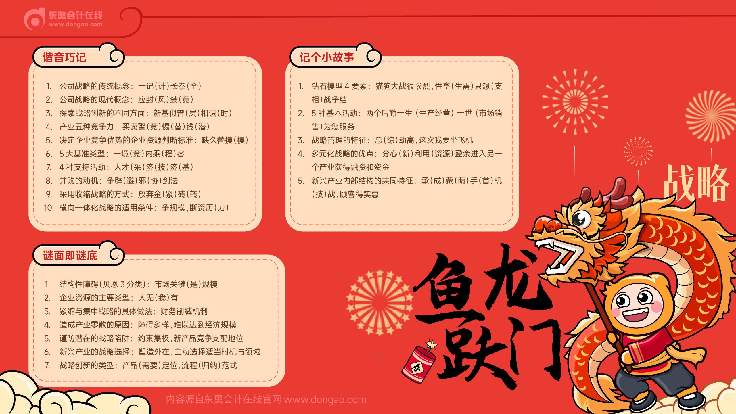東奧會計在線,在新年里將注會各科記憶碎片,提煉設(shè)計,以新春福袋的形式,為同學(xué)們送去助考福氣。注會《戰(zhàn)略》知識壁紙,快來領(lǐng)取吧。
