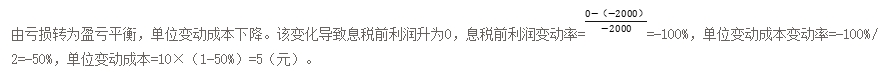 某公司只生產(chǎn)一種產(chǎn)品,目前息稅前利潤(rùn)為-2000萬(wàn)元,單位變動(dòng)成本為10元,息稅前利潤(rùn)對(duì)單位變動(dòng)成本的敏感系數(shù)為2。假設(shè)其他條件不變,該公司盈虧平衡時(shí)的單位變動(dòng)成本為( )元。