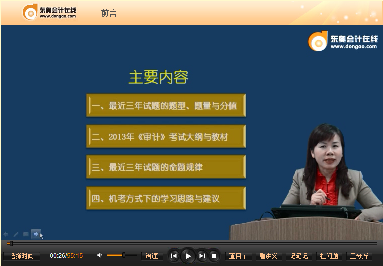 以下是東奧名師劉圣妮2013年注冊會(huì)計(jì)師考試基礎(chǔ)班免費(fèi)課件:《審計(jì)》初學(xué)審計(jì)考生的建議課程: