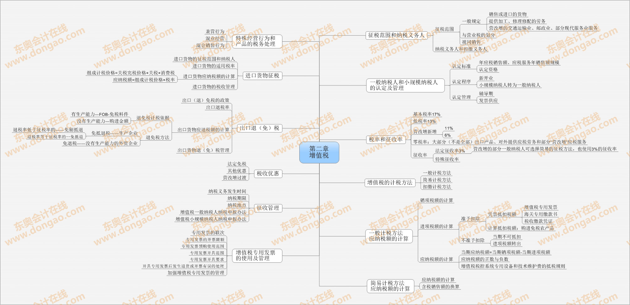 【東奧小編】2014年注冊(cè)會(huì)計(jì)師考試正式進(jìn)入基礎(chǔ)備考階段,注會(huì)知識(shí)點(diǎn)繁雜細(xì)碎,想要全面掌握注會(huì)各科目的知識(shí),需要科學(xué)高效的學(xué)習(xí)方法,思維導(dǎo)圖正是一種非常適合注會(huì)復(fù)習(xí)的學(xué)習(xí)方法,正確利用思維導(dǎo)圖,不僅能使自己積極進(jìn)行知識(shí)點(diǎn)總結(jié),形成清晰的思路,還能對(duì)知識(shí)點(diǎn)進(jìn)行快速查漏補(bǔ)缺。以下是2014《稅法》第二章增值稅思維導(dǎo)圖: