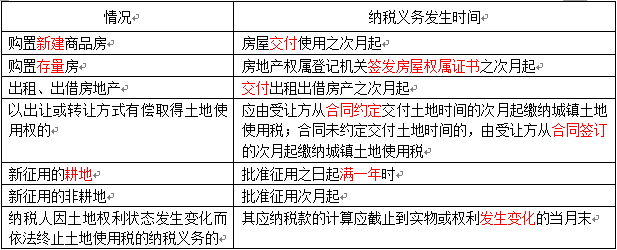 使用城鎮(zhèn)土地,一般是從次月起發(fā)生納稅義務(wù),只有新征用耕地是在批準(zhǔn)使用之日起滿一年時開始納稅。