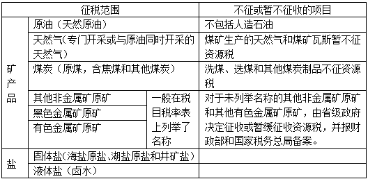 資源稅的征稅范圍分為原油、天然氣、鹽、黑色金屬礦原礦、有色金屬礦原礦、煤炭、其他非金屬礦原礦共七個(gè)稅目。
