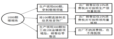 注:上述將100顆轉(zhuǎn)賣給其他首飾廠,外購(gòu)的珊瑚珠不能直接進(jìn)入消費(fèi)品市場(chǎng)。