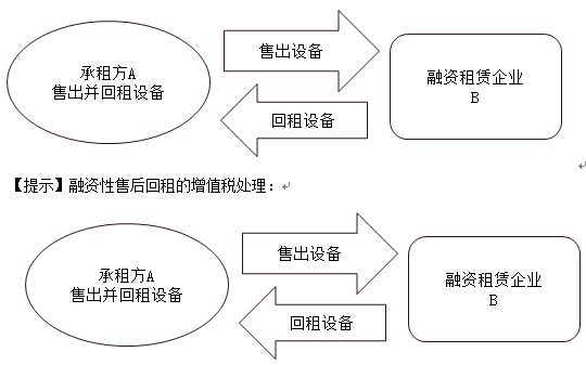 (1)融資性售后回租。是指承租方以融資為目的,將資產(chǎn)出售給從事融資租賃業(yè)務(wù)的企業(yè)后,又將該資產(chǎn)租回的業(yè)務(wù)活動(dòng)。承租方先將資產(chǎn)銷(xiāo)售取得資金,再支付資金將已售資產(chǎn)租回使用,其實(shí)質(zhì)屬于融資行為。