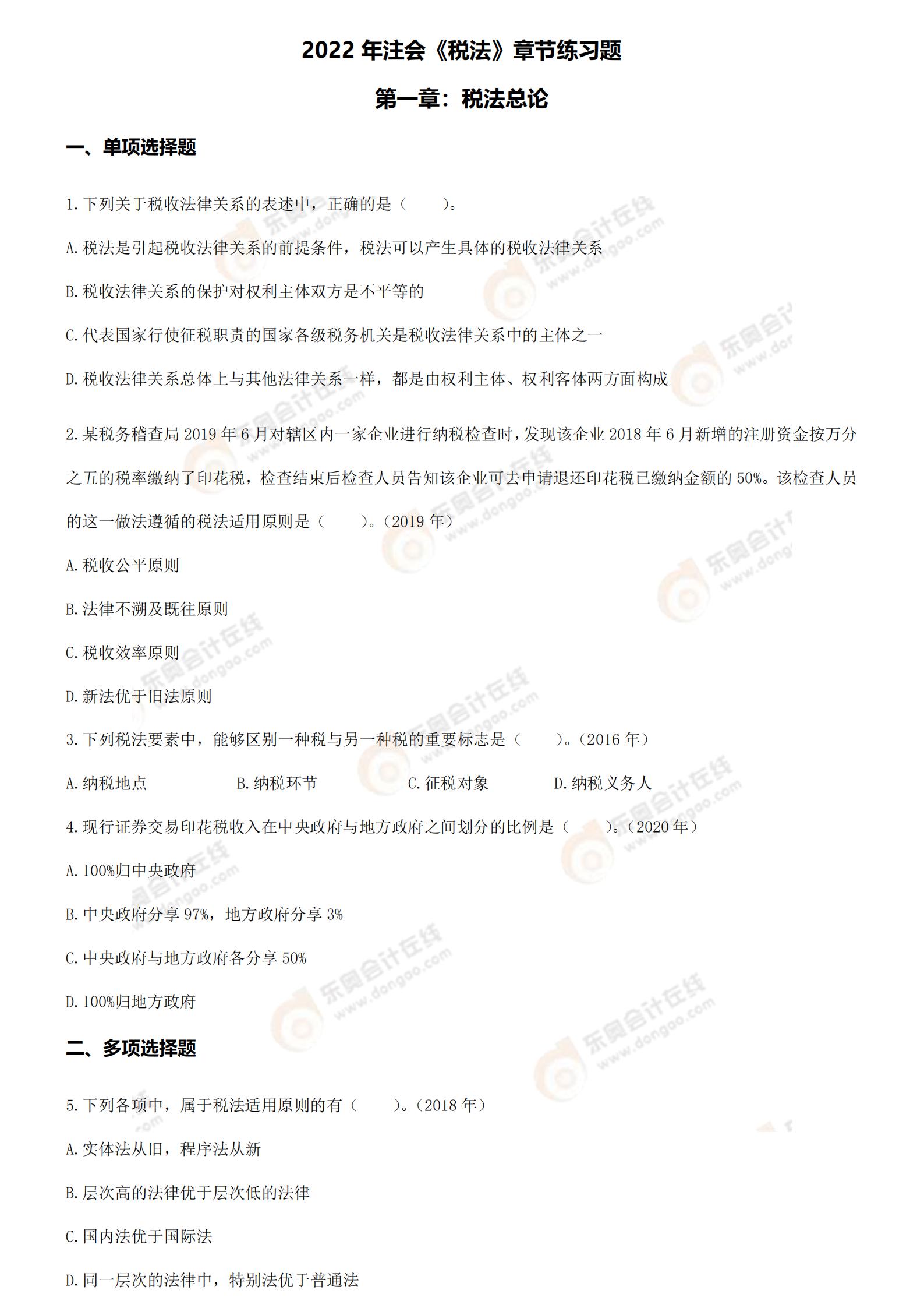 注:章節(jié)練習(xí)題出自東奧名師劉穎老師的2022年《稅法》基礎(chǔ)精講班課程講義
